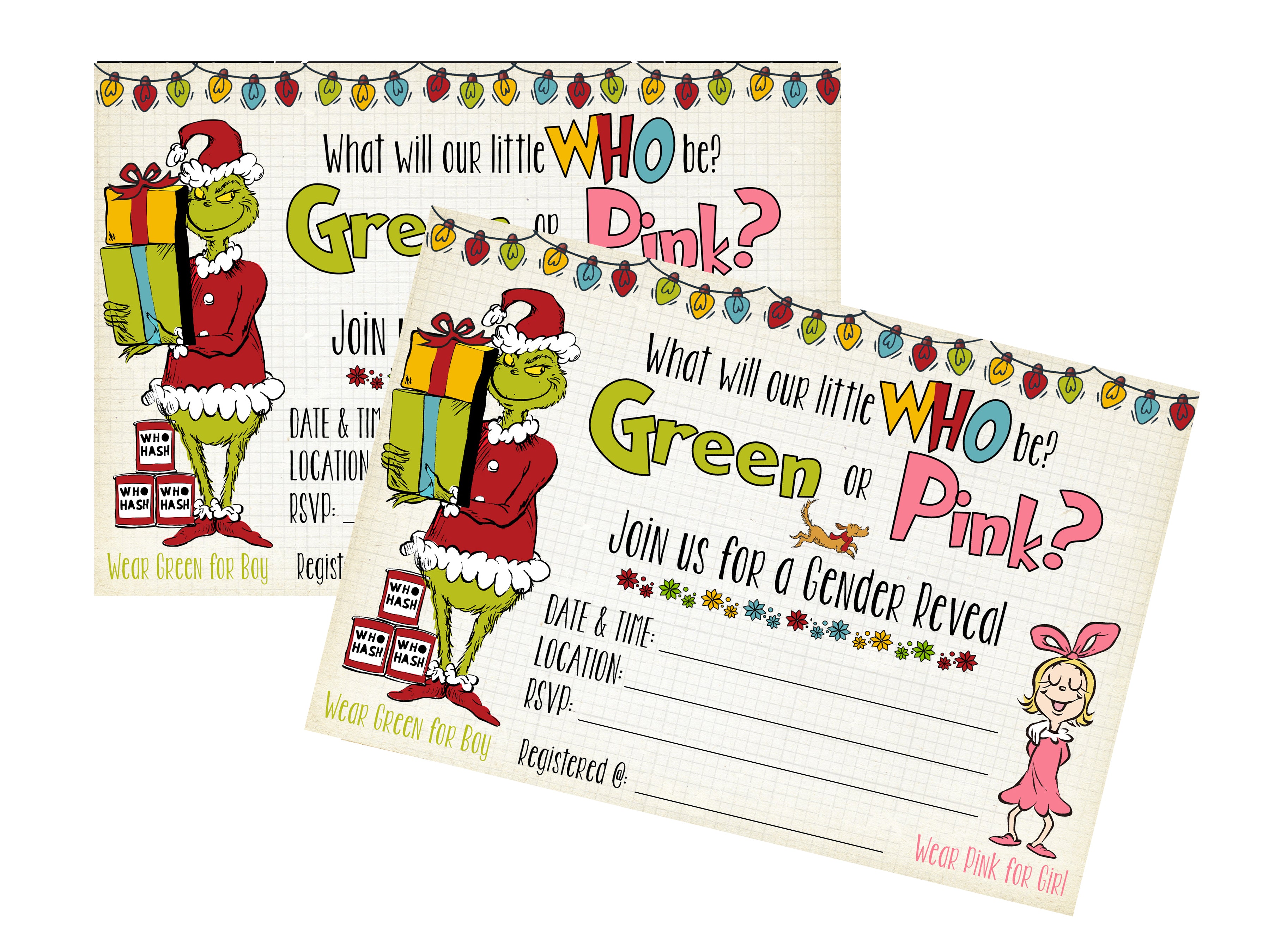 What Will Our Little Who Be? - Christmas Holiday Character Themed Baby Shower Gender Reveal Party Invitation Invite Decoration Supply (Set of 12) with Envelopes