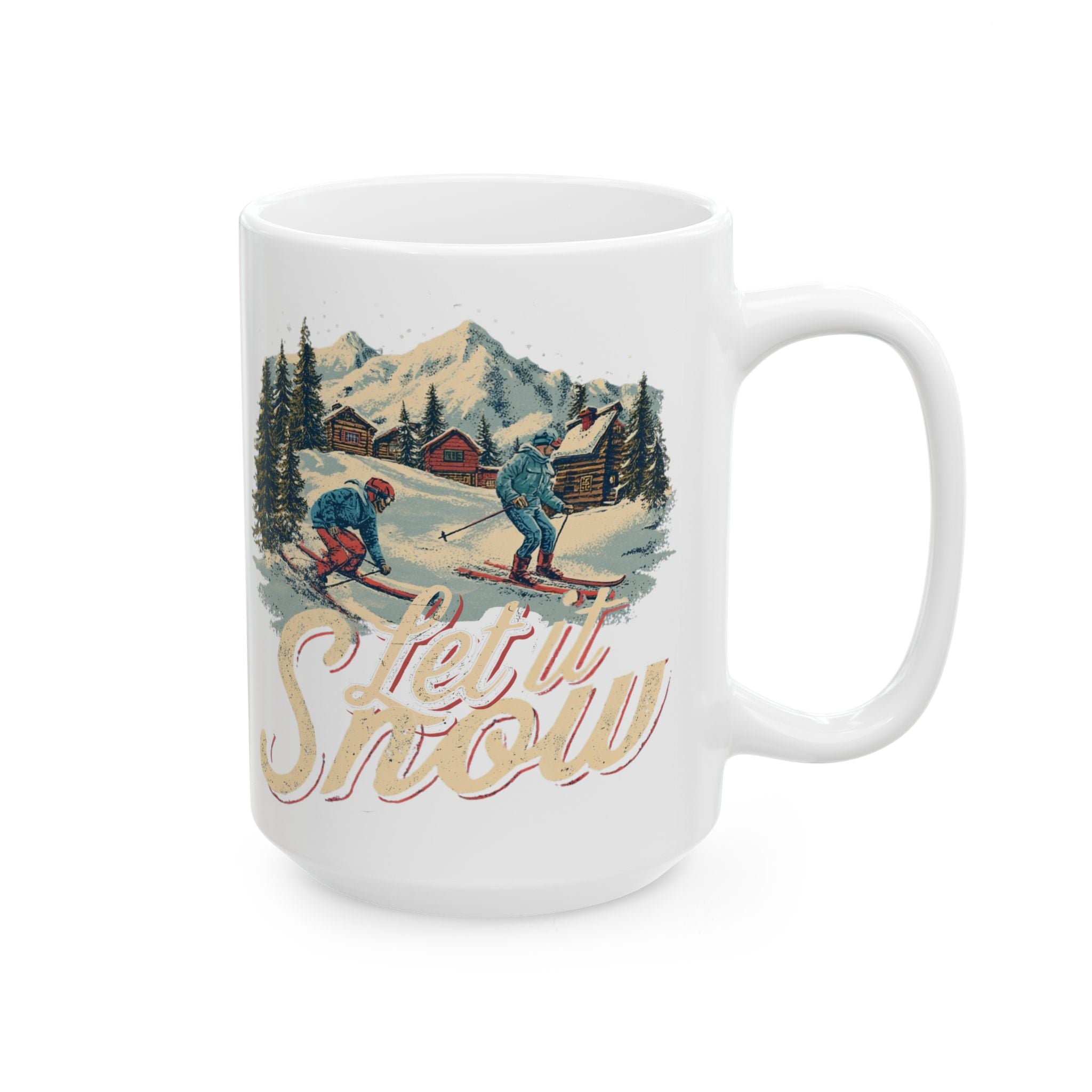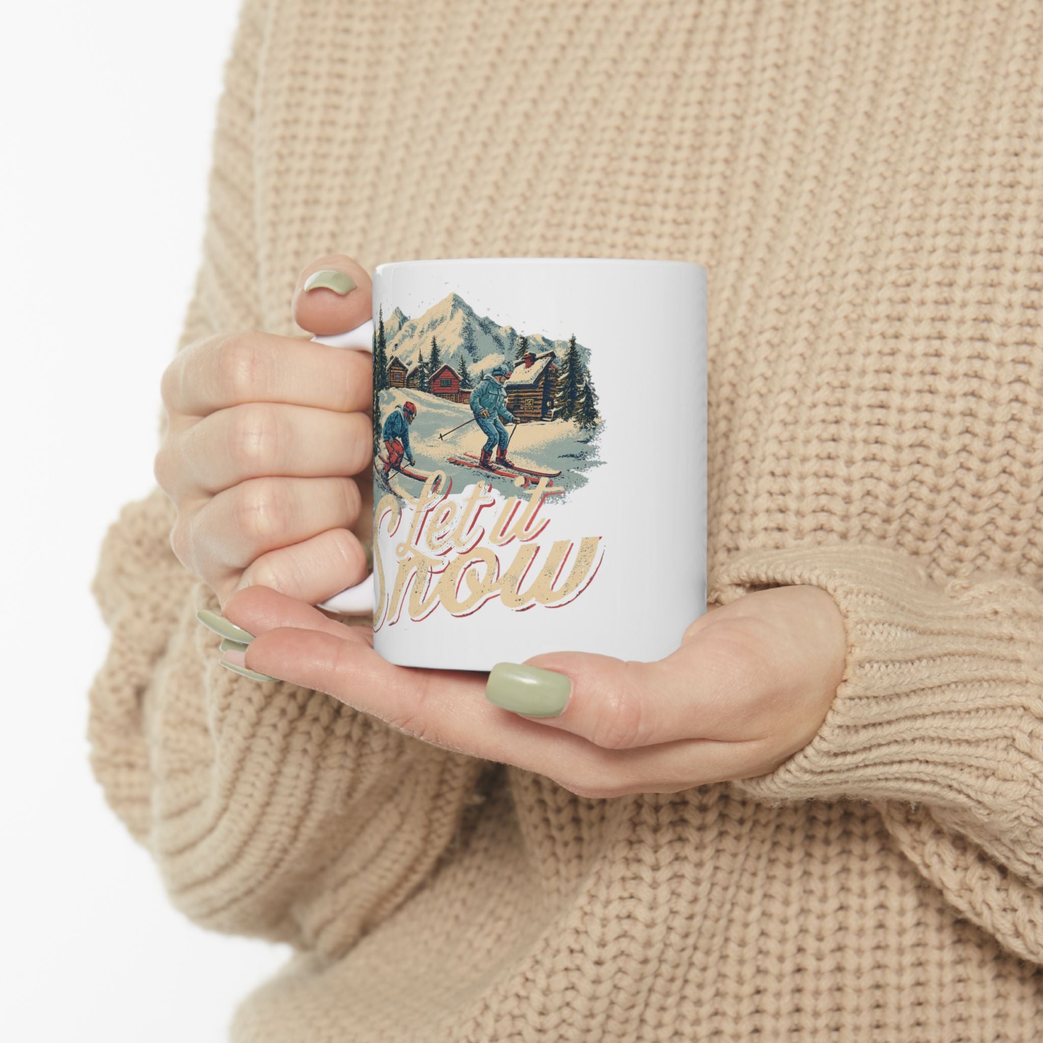 Vintage Snowy Cabin Ceramic Mug — Rustic Winter Landscape Coffee Cup (11oz/15oz)